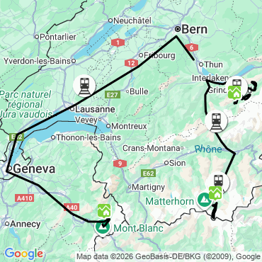 - Train between Bernese Oberland to Geneva airport - Shared shuttle transfer between Geneva airport to Chamonix hotel.