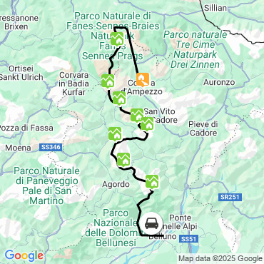 - Dinner in Cortina d'Ampezzo (day 1) and Pederu hut (day 2).