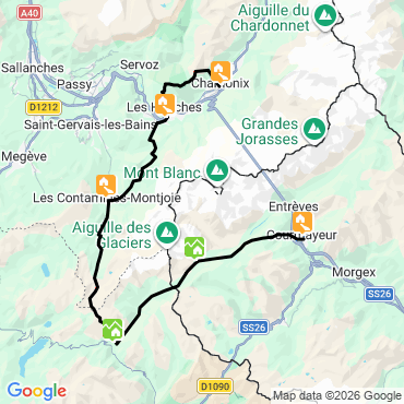 - Dinners in Chamonix-Mont-Blanc (day 1) and Courmayeur (day 6)